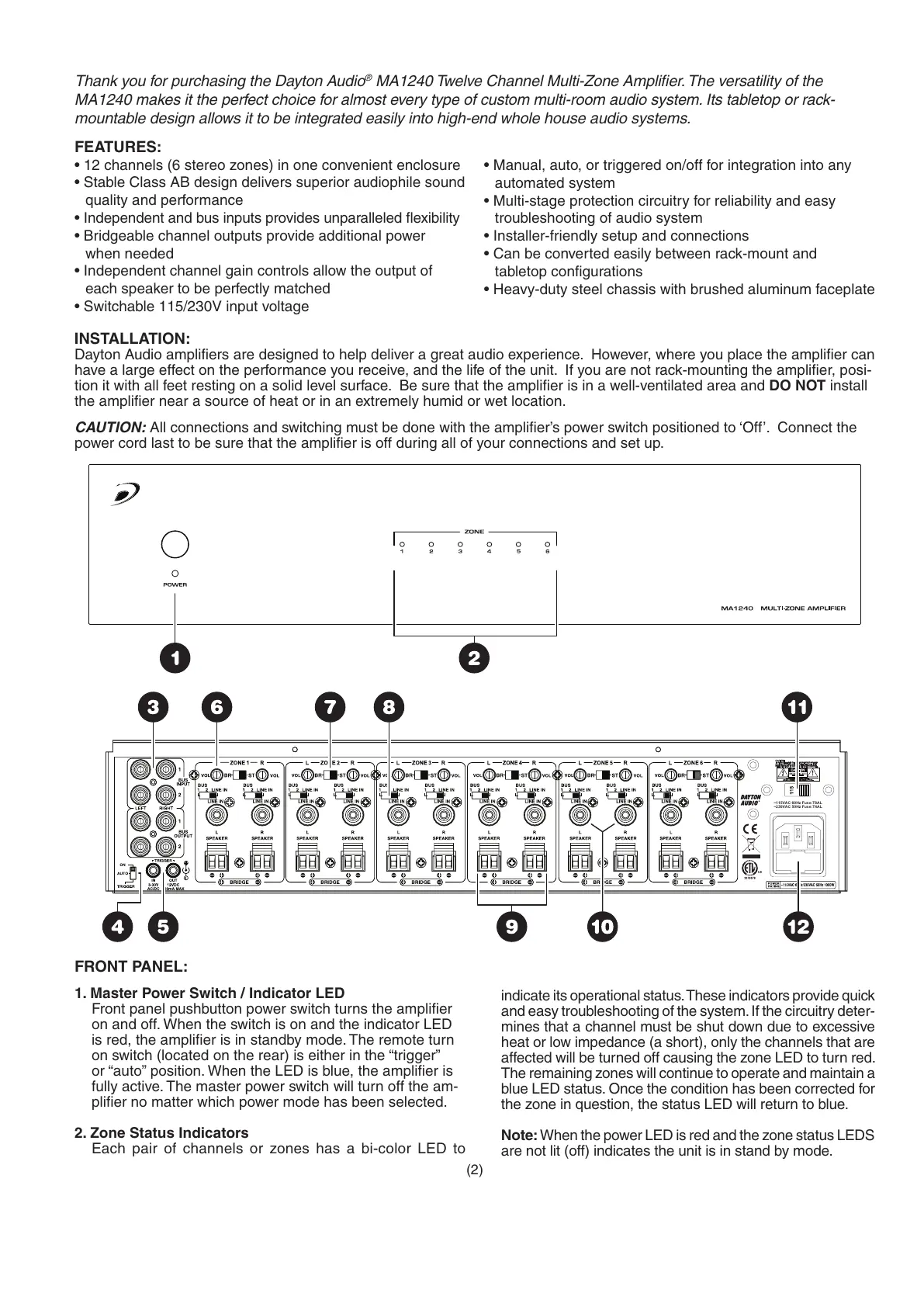 MA1240 makes it the perfect choice for almost every type of custom multi-room audio system. Its tabletop or rack-
