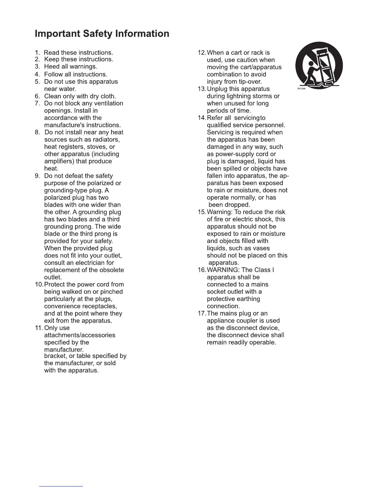 DaytonAudio SA230 - Important Safety Information; General Safety Precautions; Operational and Electrical Safety
