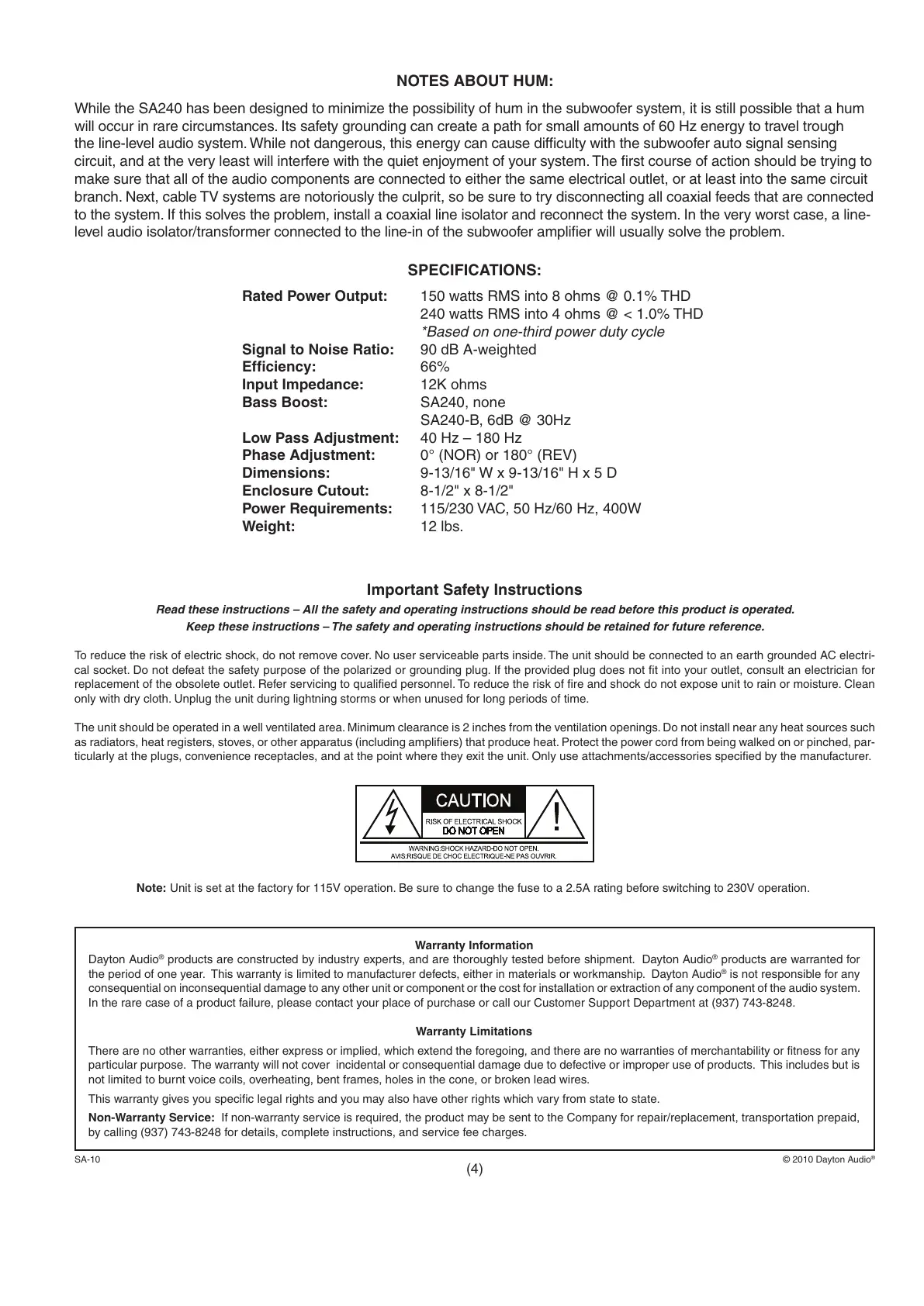 SA-10 ©2010DaytonAudio