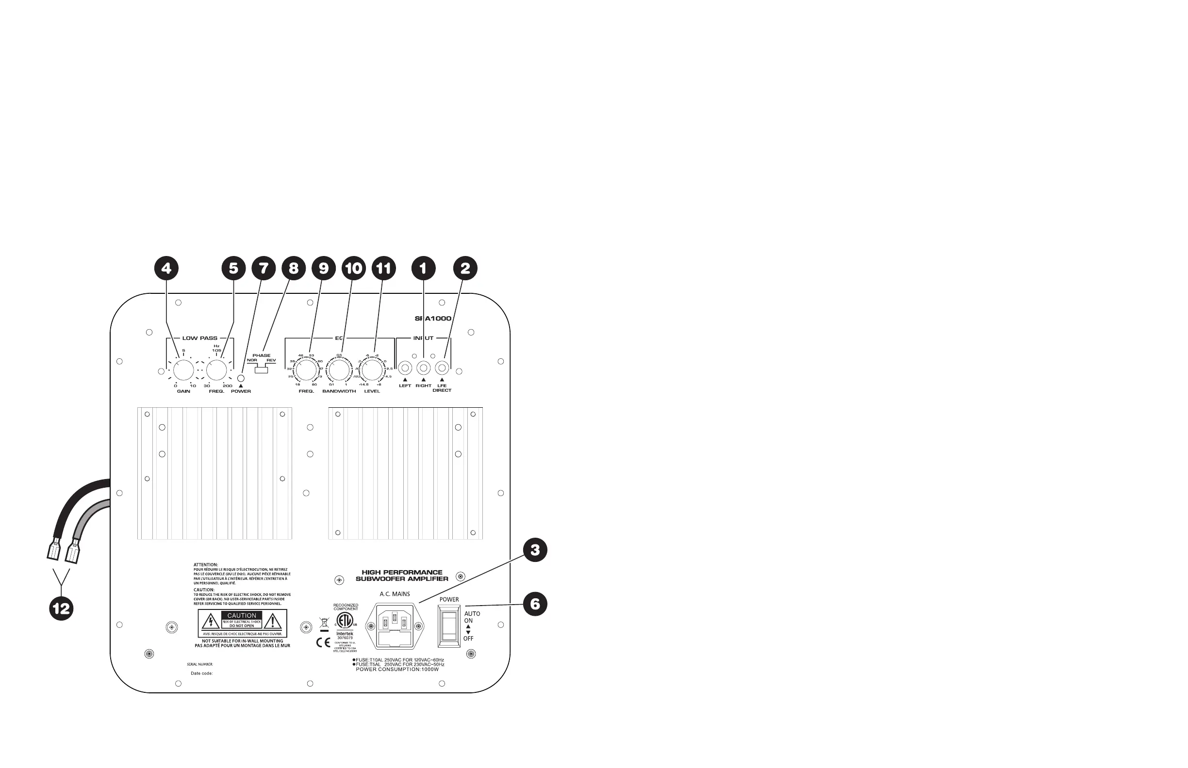 subwoofer amplifiers available. The SPA1000 has the power to drive even the most power-hungry subwoofer systems.
