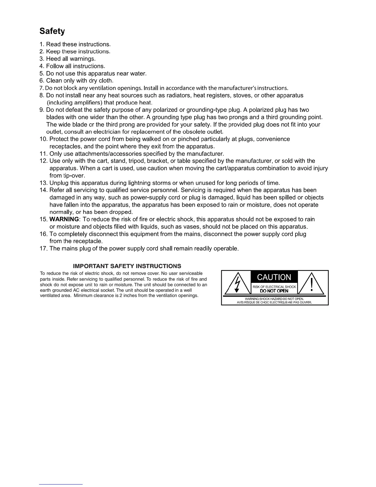 DaytonAudio SPA250DSP - Safety Instructions; Important Safety Instructions