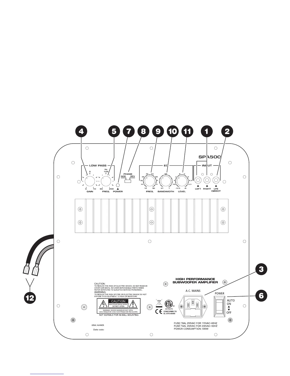 woofer amplifiers available. The SPA500 has the power to drive even the most power-hungry subwoofer systems.