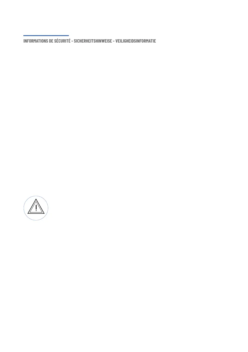 INFORMATIONS DE SÉCURITÉ - SICHERHEITSHINWEISE - VEILIGHEIDSINFORMATIE