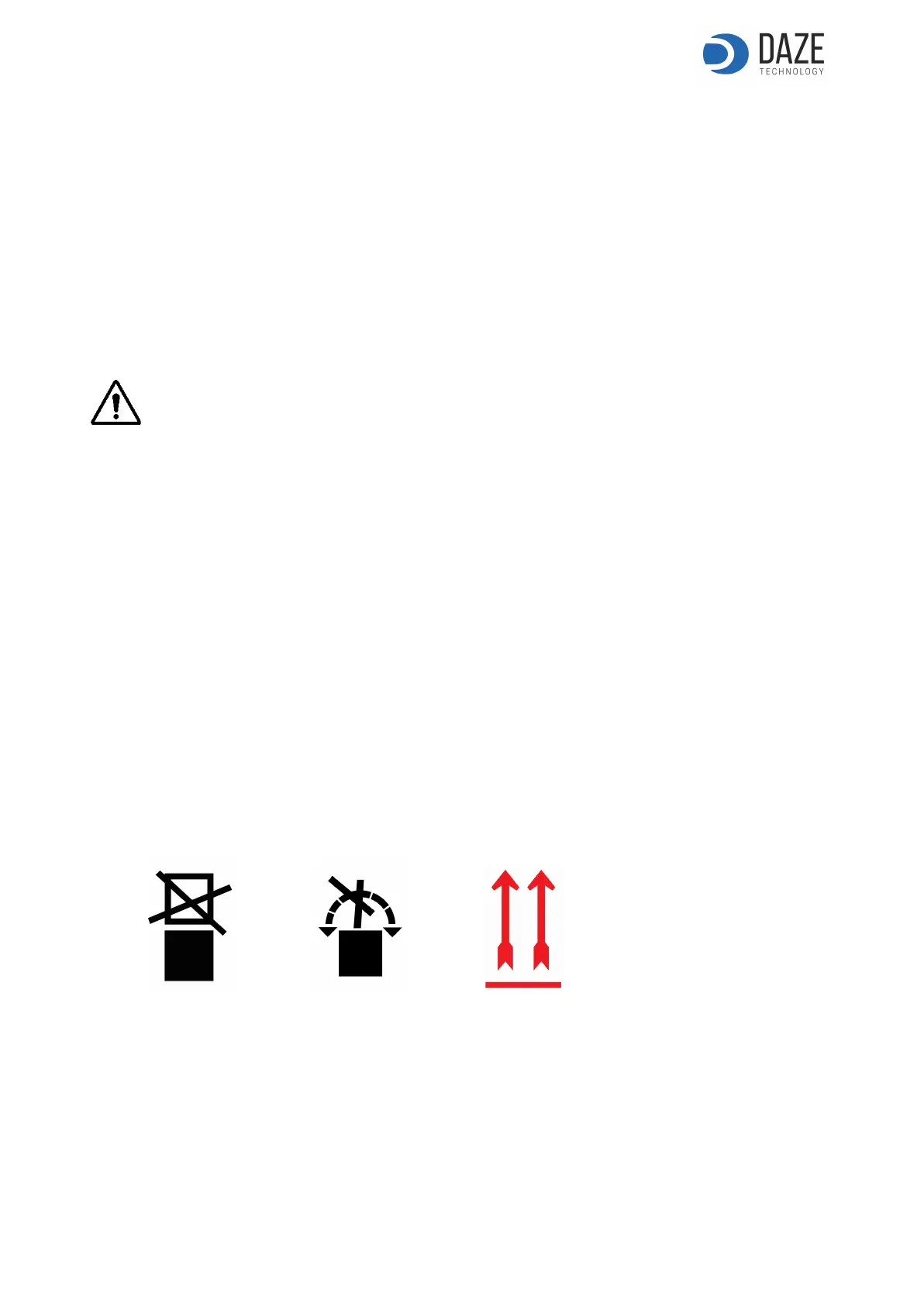 Figure 3. Pictograms on the packaging. From the left: Do not place loads on the box; Do not overturn; Tall.