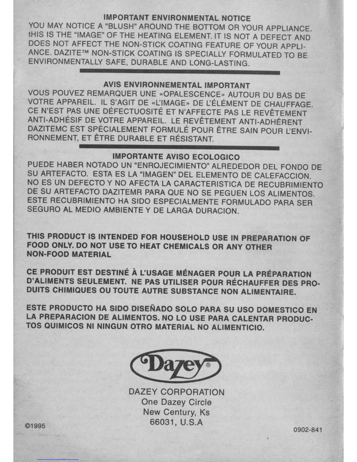 Dazey 2200 - Important Environmental Notice