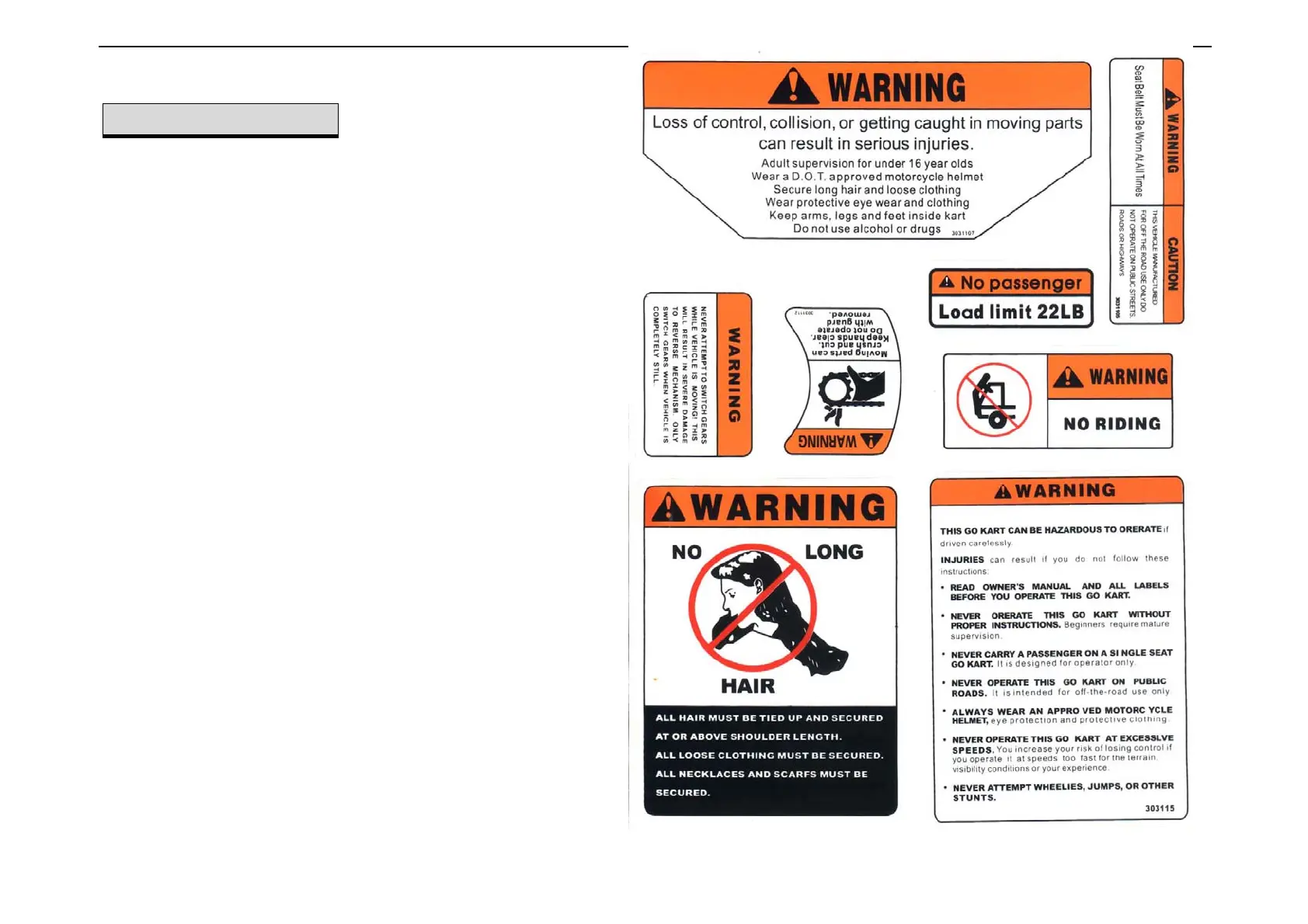 of your BUGGY. If a label comes off or