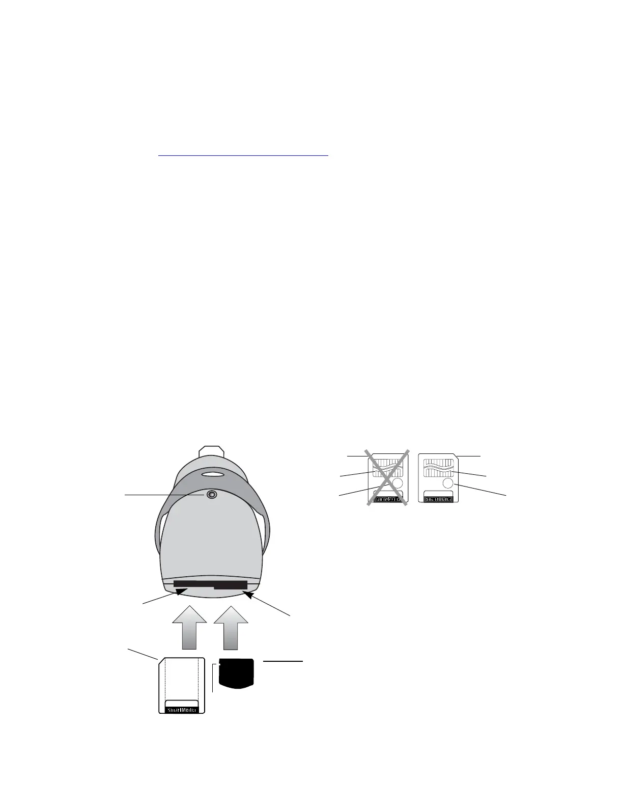 1. Position the SmartMedia or xD card, as shown in the illustration below.