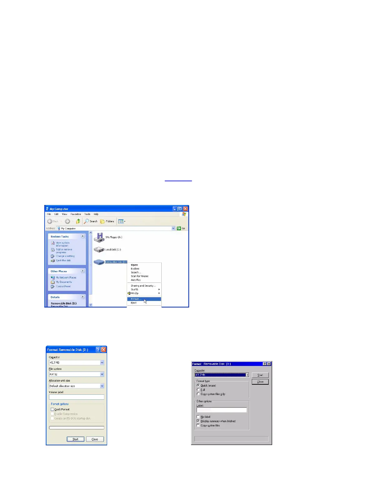 2. Open My Computer, as shown on page 25, and right-click on the Removable Disk icon