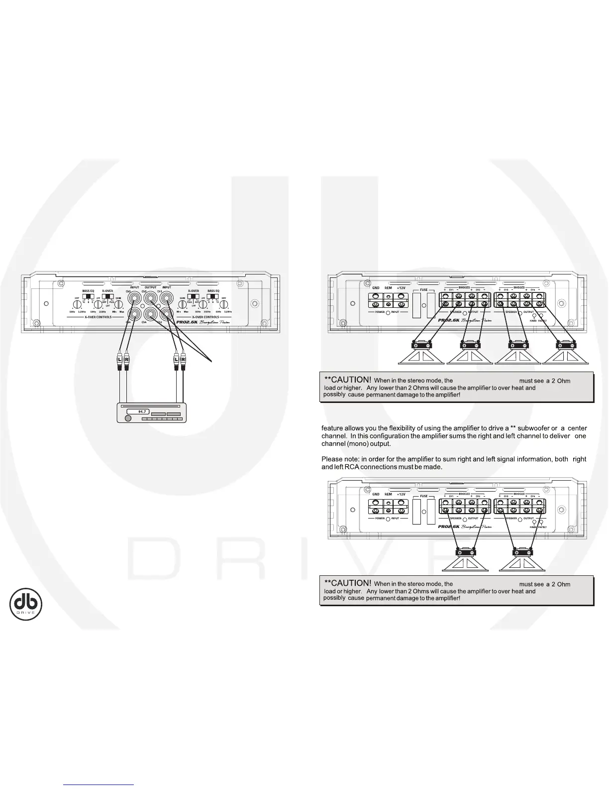 The DB Drive amplifiers are capable of being bridged in a mono configuration. This