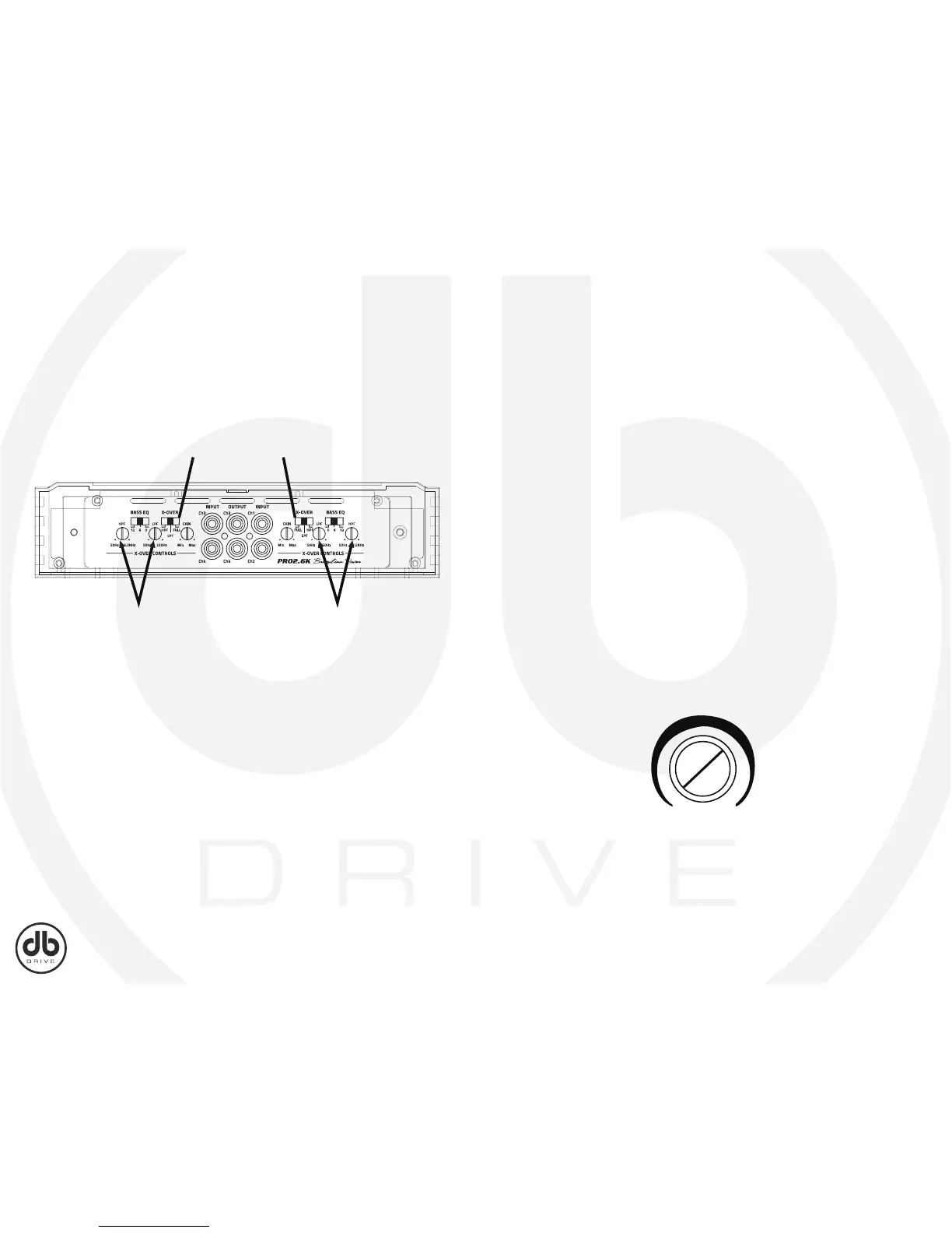 gain sensitivity control for the DB Drive amplifier is located on the side panel. This