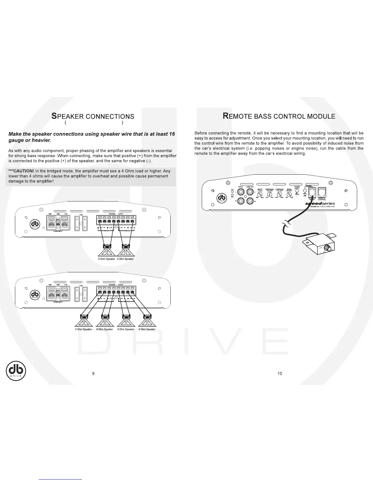 DB Drive SA600.4 - Speaker Wiring and Remote Module; Speaker Connections (4-Channel); Remote Bass Control Module