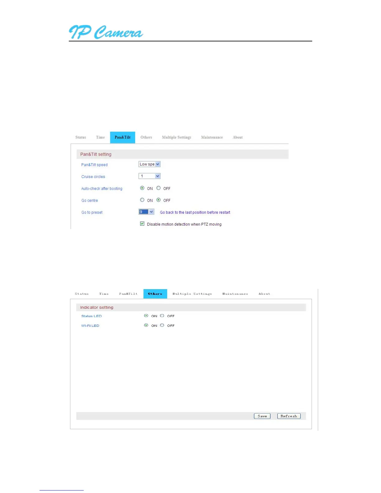 In Pan/Tilt setting, you can set Pan/Tilt speed, cruise laps(1~10 laps) and whether enable or disabl