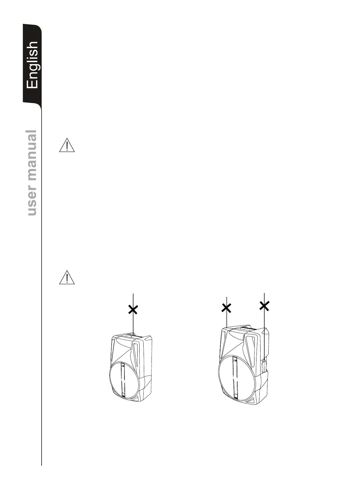 Never use the handles to hang the speaker!