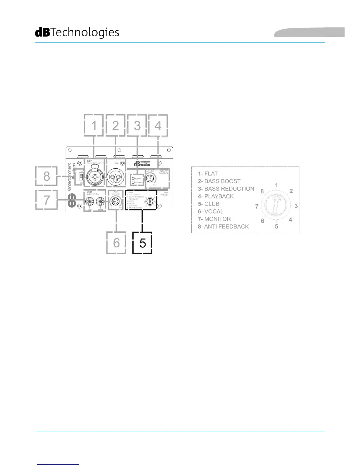 Il potente DSP dei sistemi ES 602-802 presenta 8 congurazioni, che permettono di equalizzare digitalmente il
