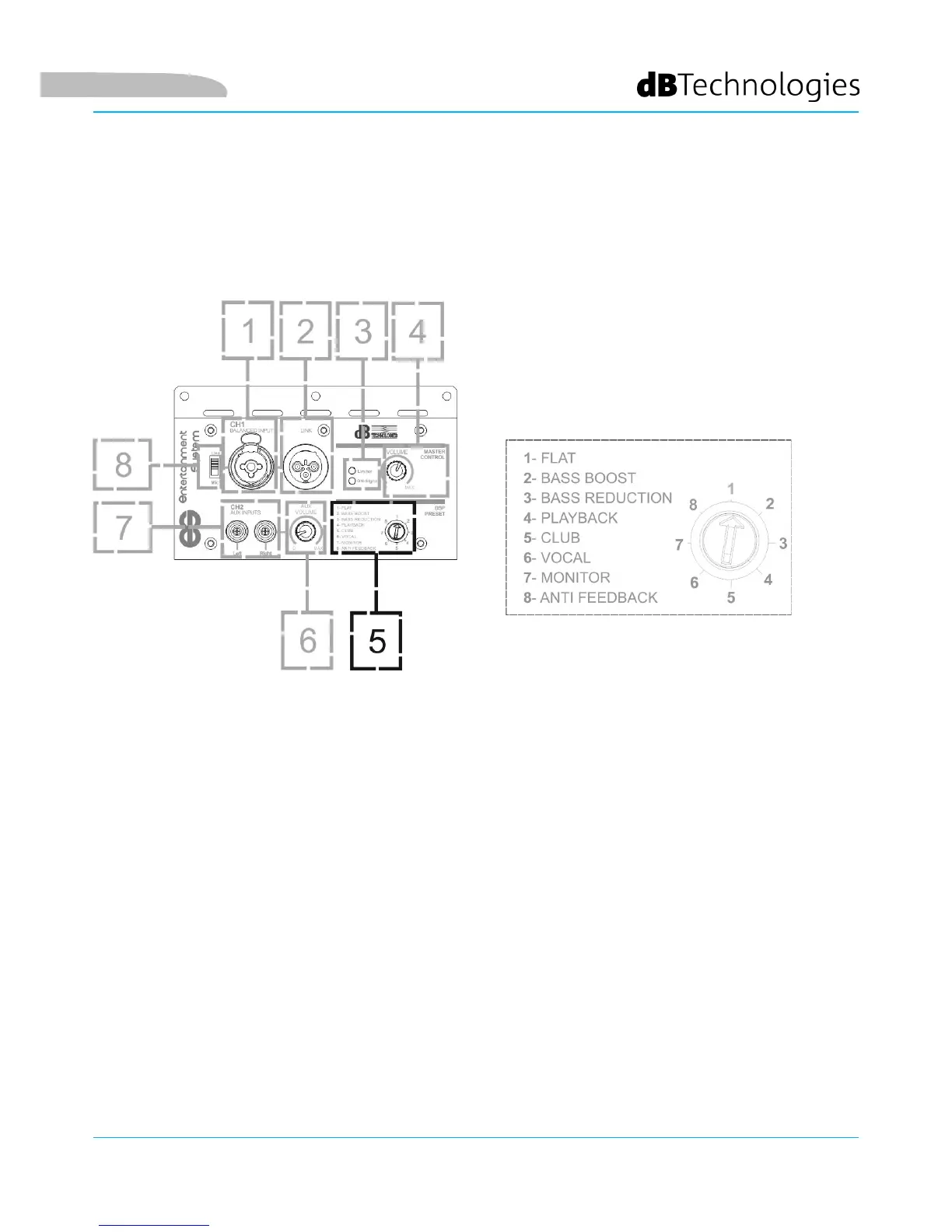 The powerful DSP of the ES 602-802 systems provides 8 congurations, allowing to digitally equalise the audio