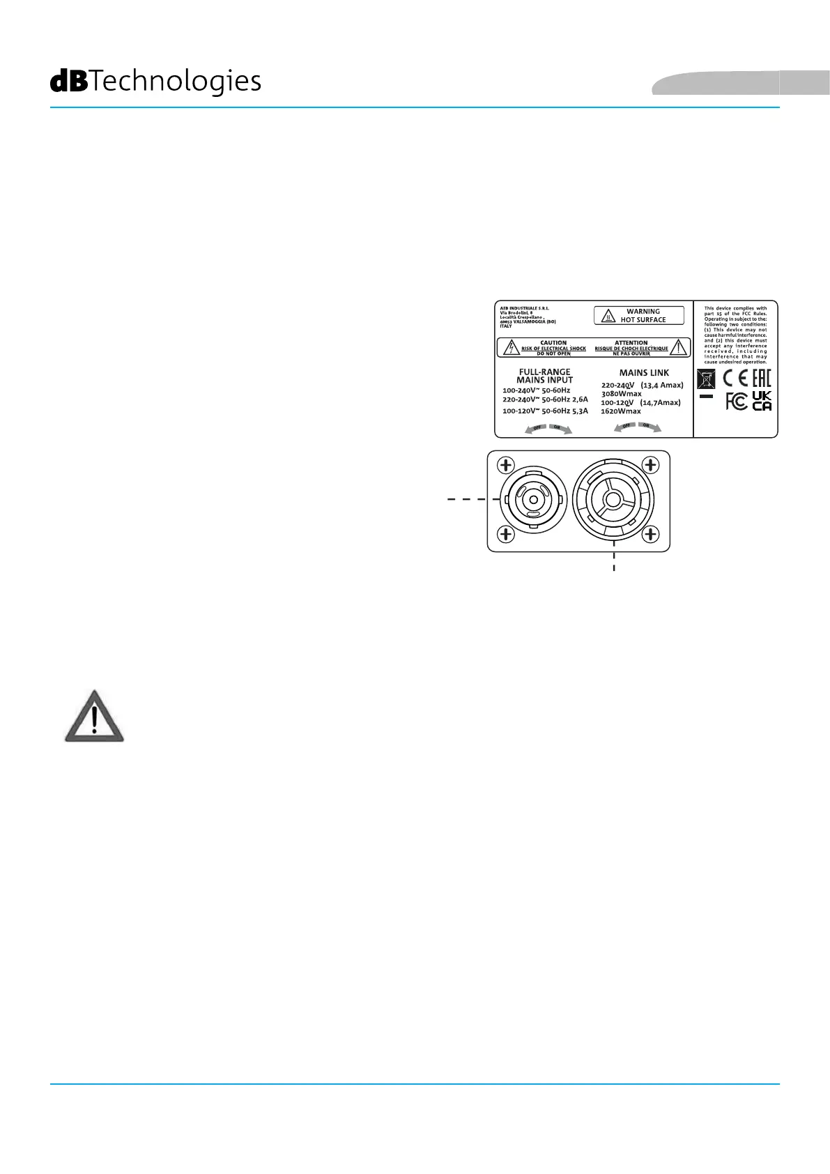 • Utilizzare solo il cavo di alimentazione in dotazione o cavi di alimentazione dBTechnologies.