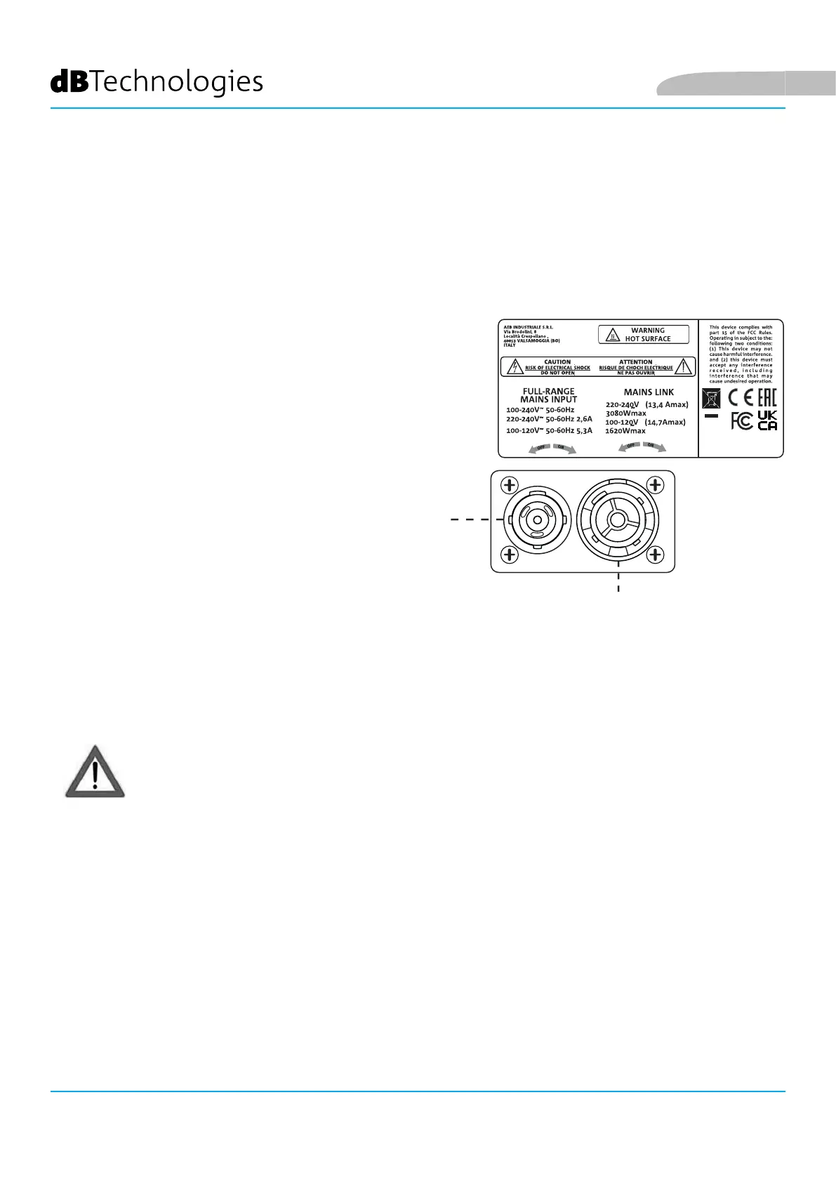 • Nur das mitgelieferte Stromkabel oder dBTechnologies Stromkabel verwenden.