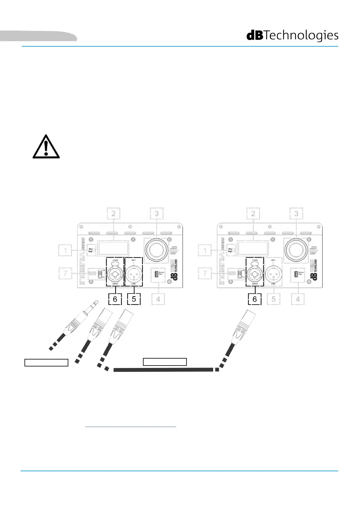 bilanciato XLR l’uscita “LINK” (5) del primo diffusore all’ingresso “INPUT” (6) del secondo. Questa seconda