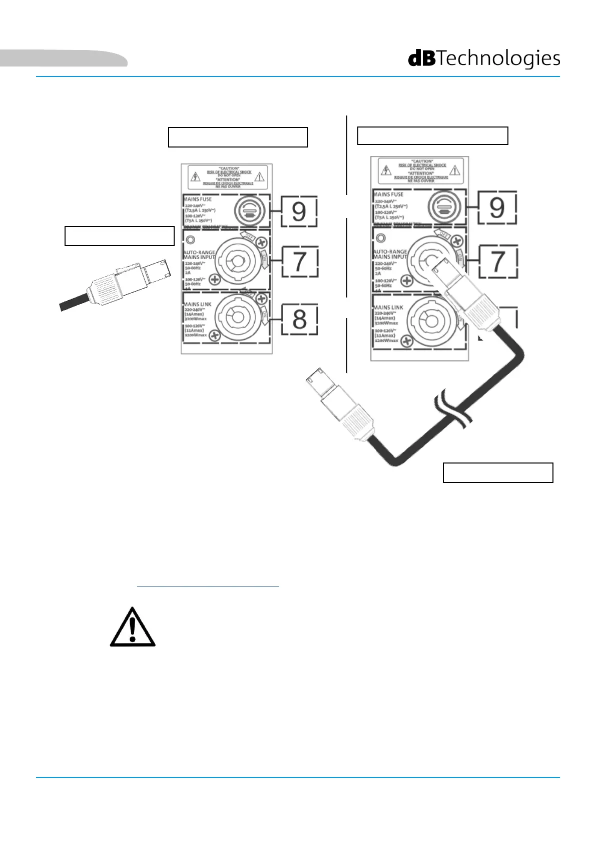 LINK OUTPUT (8) all’ingresso AUTO-RANGE MAINS INPUT (7), come illustrato.