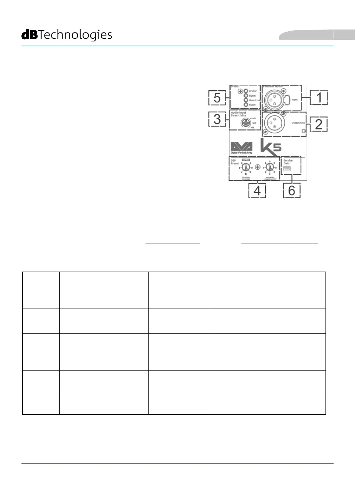 5. LED D’AVERTISSEMENT (Limiter, Signal, Mute/Prot, Ready)