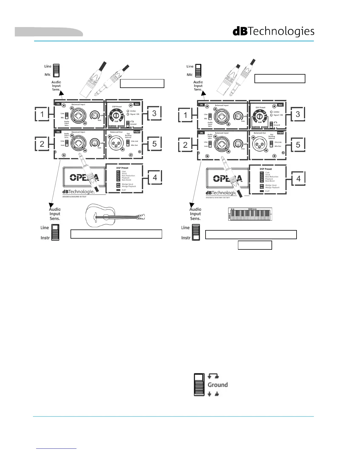 Una volta effettuato il collegamento degli ingressi, selezionare il corretto DSP preset (3).