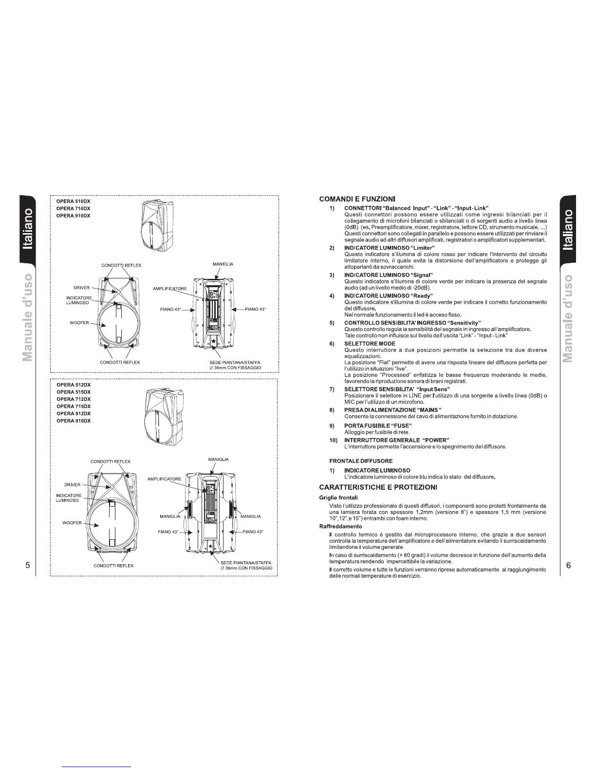 dB Technologies OPERA 515DX - Italian Commands and Functions; Italian Characteristics and Protections; Front Grille, Cooling, and LED Status