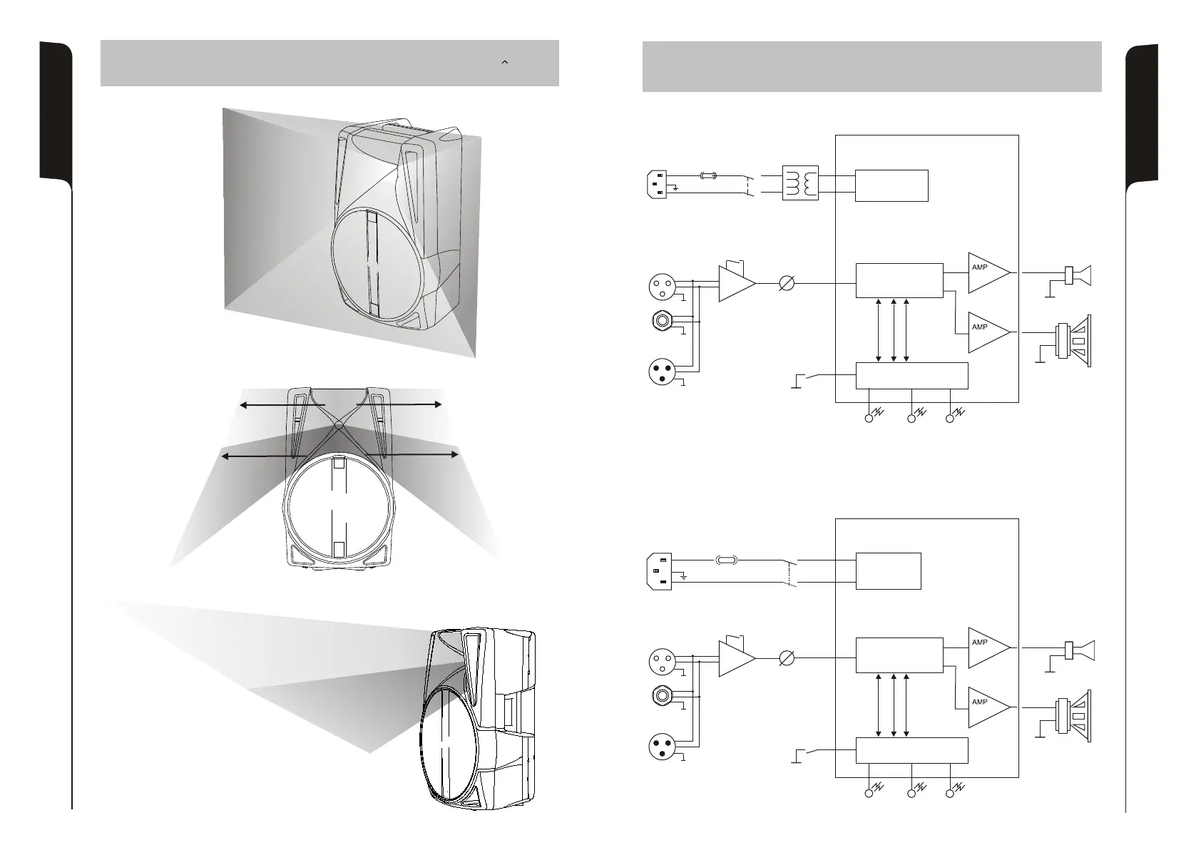 dB Technologies Opera D - Horn Coverage and Block Diagrams; Horn Angle Coverage; Block Diagrams