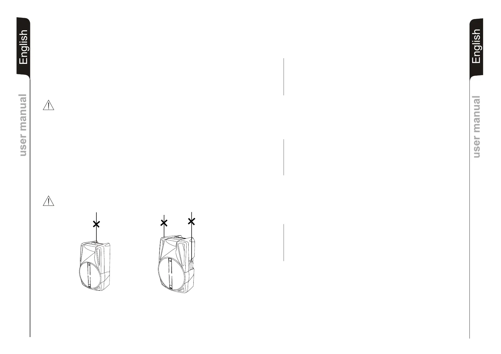 Never use the handles to hang the speaker!