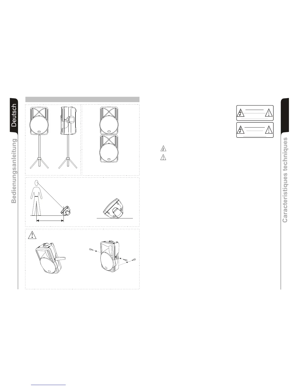 les parties métalliques de l’enceinte doivent être reliées à la terre. Une fiche polarisée comporte deux