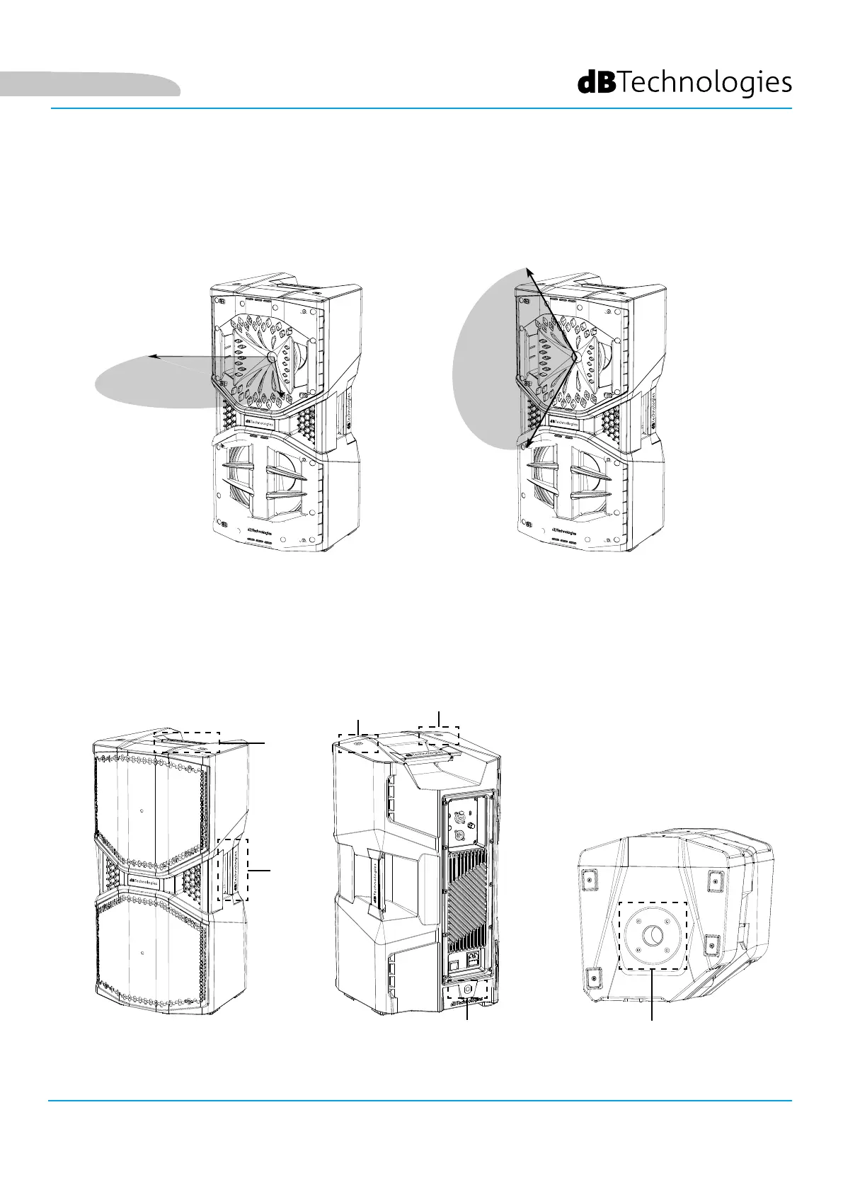 partie supérieure. L’ergonomie et le montage rapide (suspendu ou debout) de l’enceinte sont assurés par 3 points
