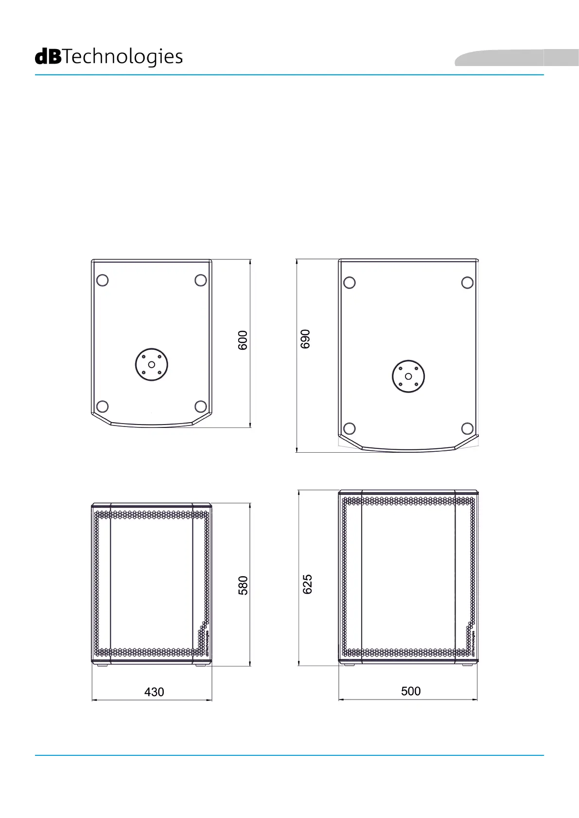 dB Technologies SUB 600 Series - Mechanische und Akustische Eigenschaften; Abmessungen