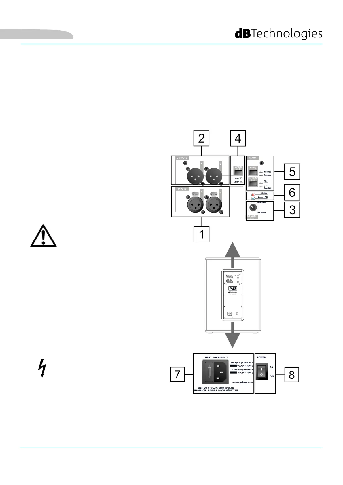 Das Panel des Verstärkers verfügt über: