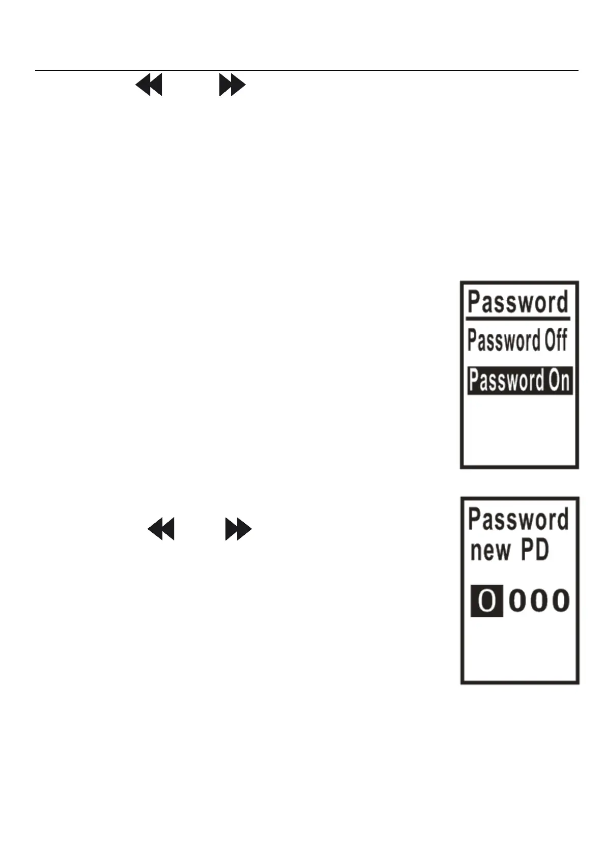 This toggles the password ON/OFF.