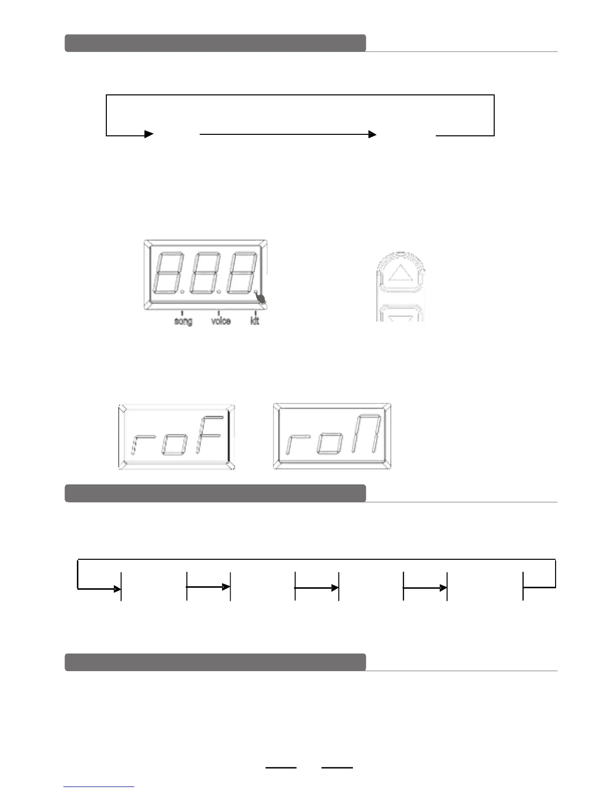 1). Press [KIT REV ON/OFF] key to enter into drum kit setting or to switch drum kit and