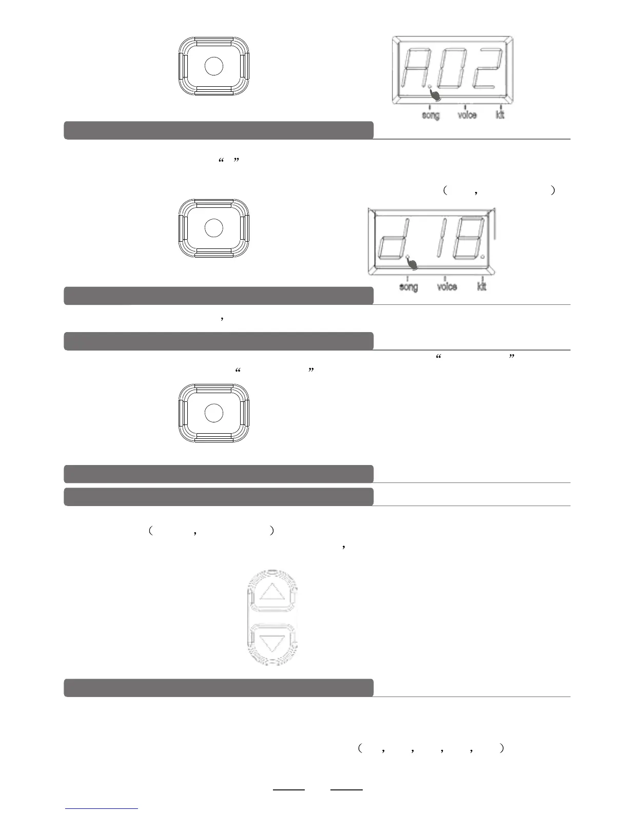The display shows letter d first, and the drum sound volume next. SONG LED