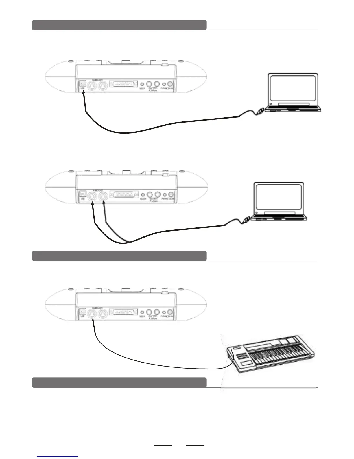 MIDI port: connect with the MIDI OUT connector of MIDI keyboard or external