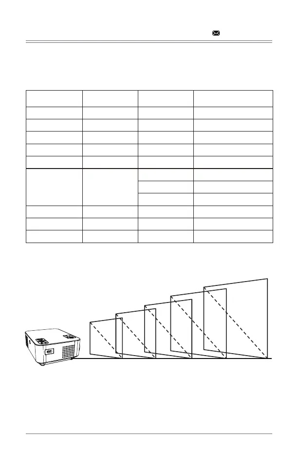 DBPOWER L12 - TECHNOLOGY FEATURES; Basic parameters; Projection distance and screen size