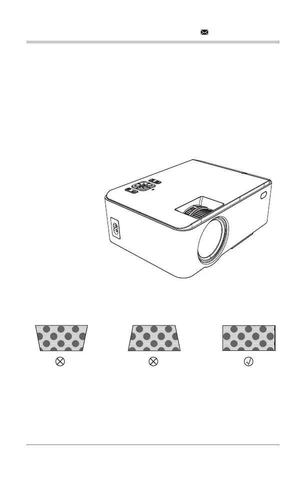 Make sure the projector is horizontal to the projector screen and adjust the focus by pressing