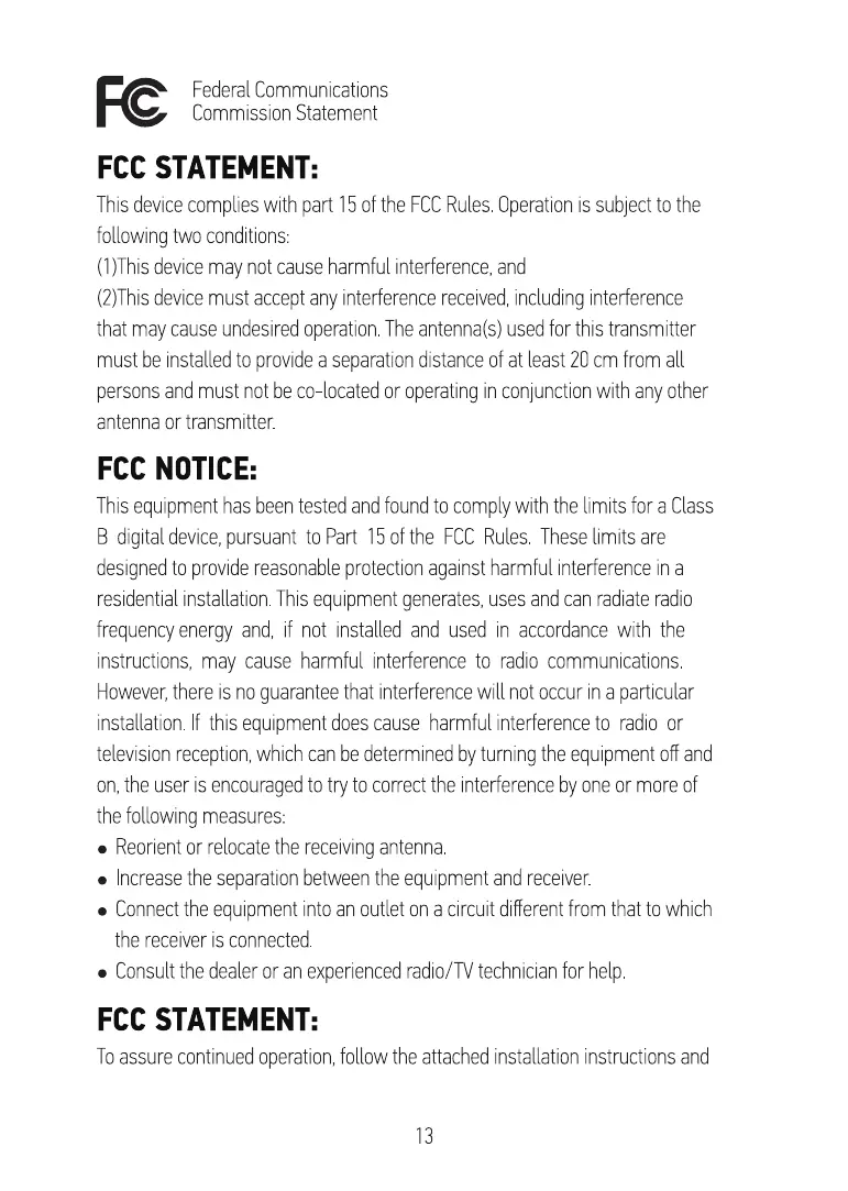 DBPOWER SBB-036P3 - FCC Statement and Safety Instructions; FCC Statement