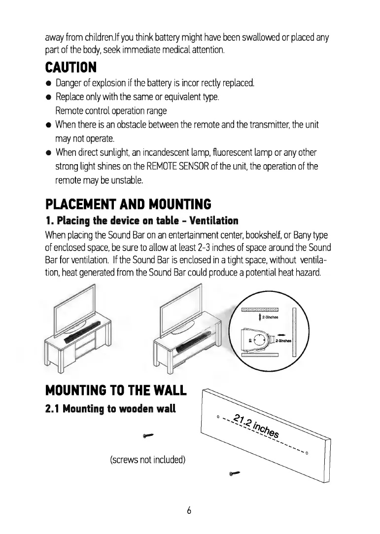 DBPOWER SBB-036P3 - Placement and Mounting; Placing the device on table - Ventilation; Mounting to the wall