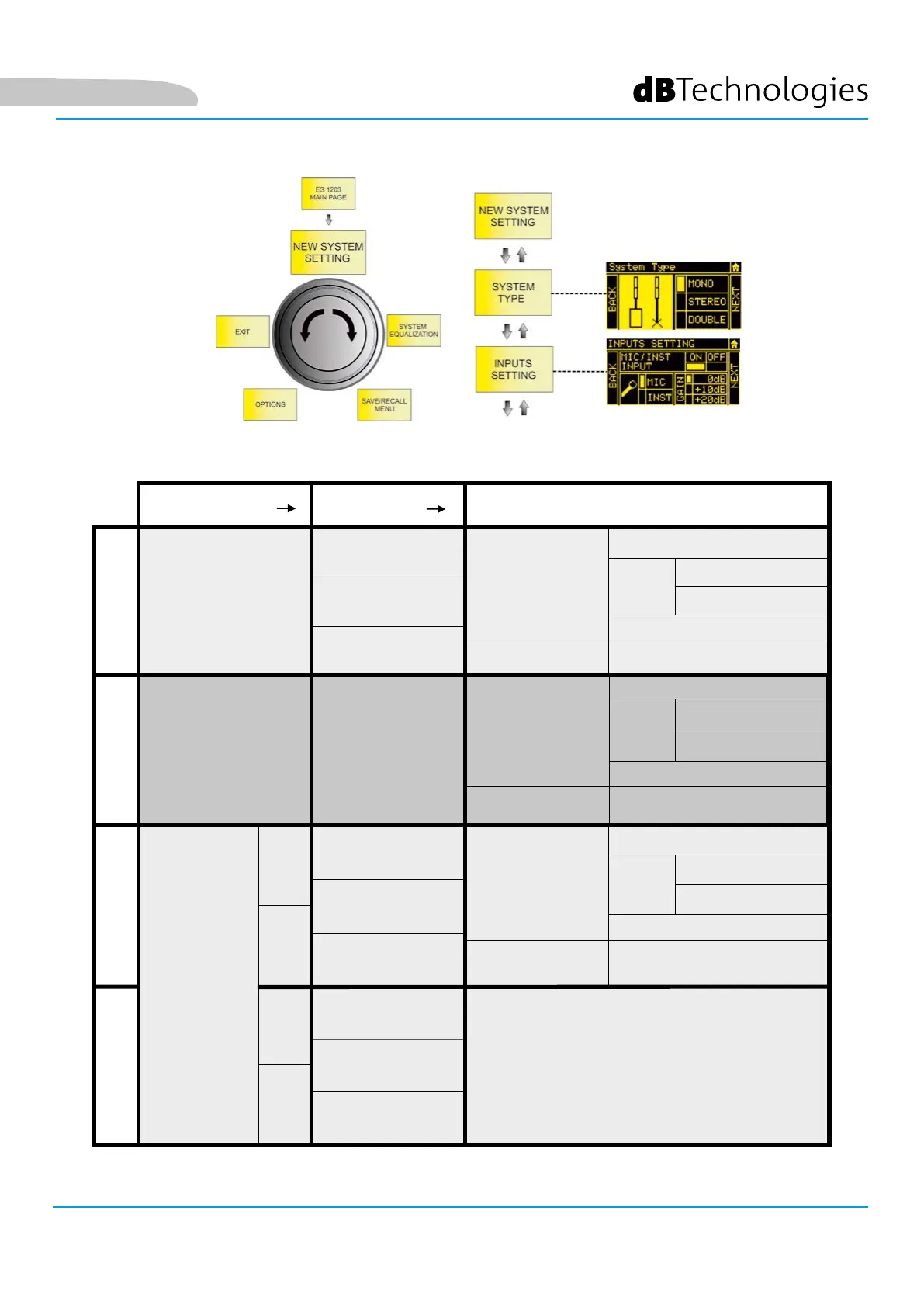 La sous-page-écran permet la conguration rapide du système selon les paramètres indiqués dans le tableau
