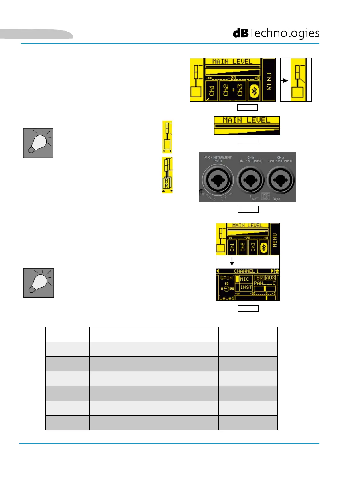 NIVEL DE SALIDA (ENVÍO AL MEZCLADOR INTERNO) -∞ ÷ 3 dB