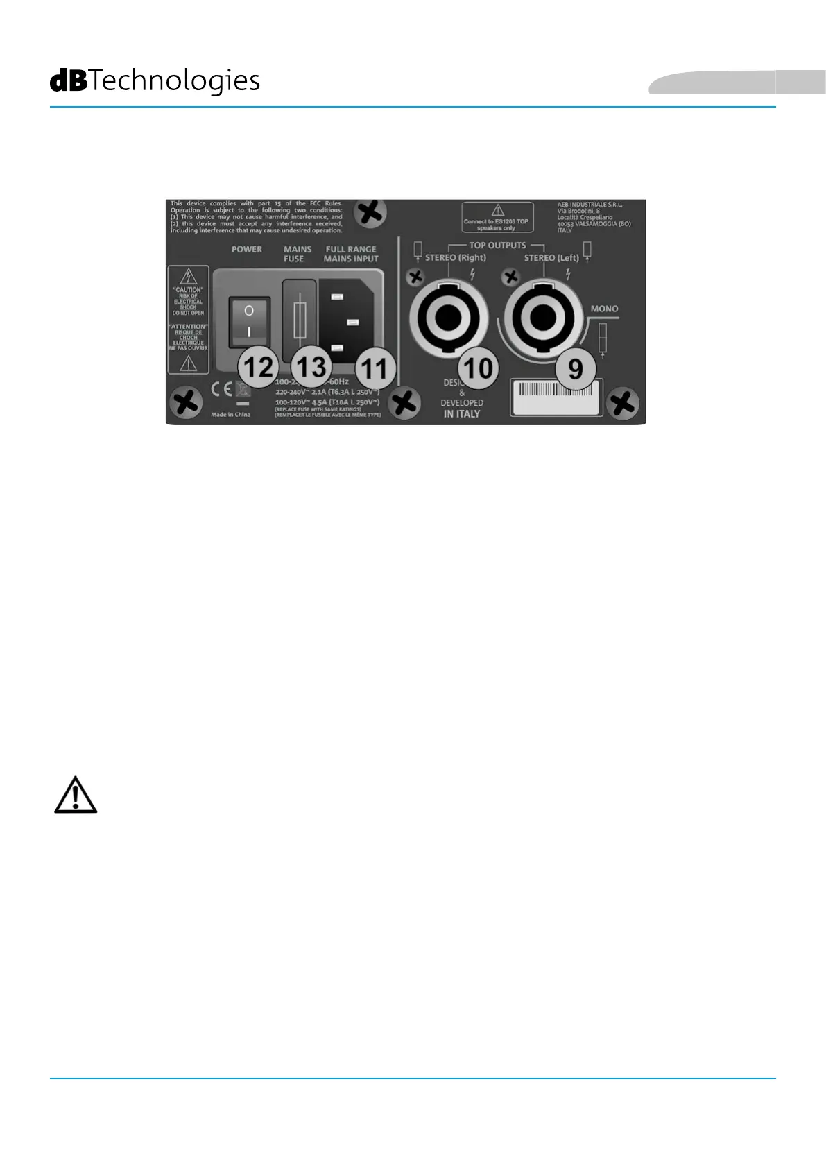 • Connect only ES1203TOP passive diffusers to the TOP OUTPUTS connectors!