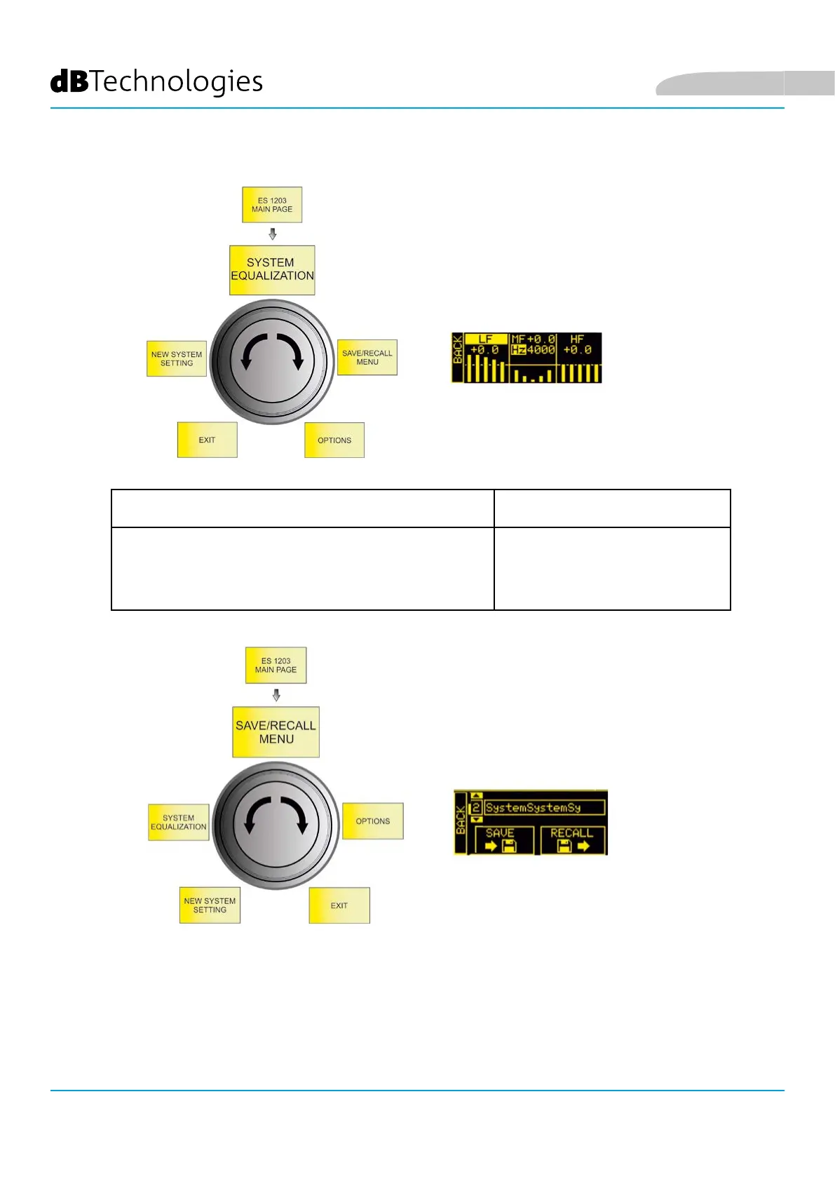 3. Highlight the RECALL image to recall a named conguration saved previously
