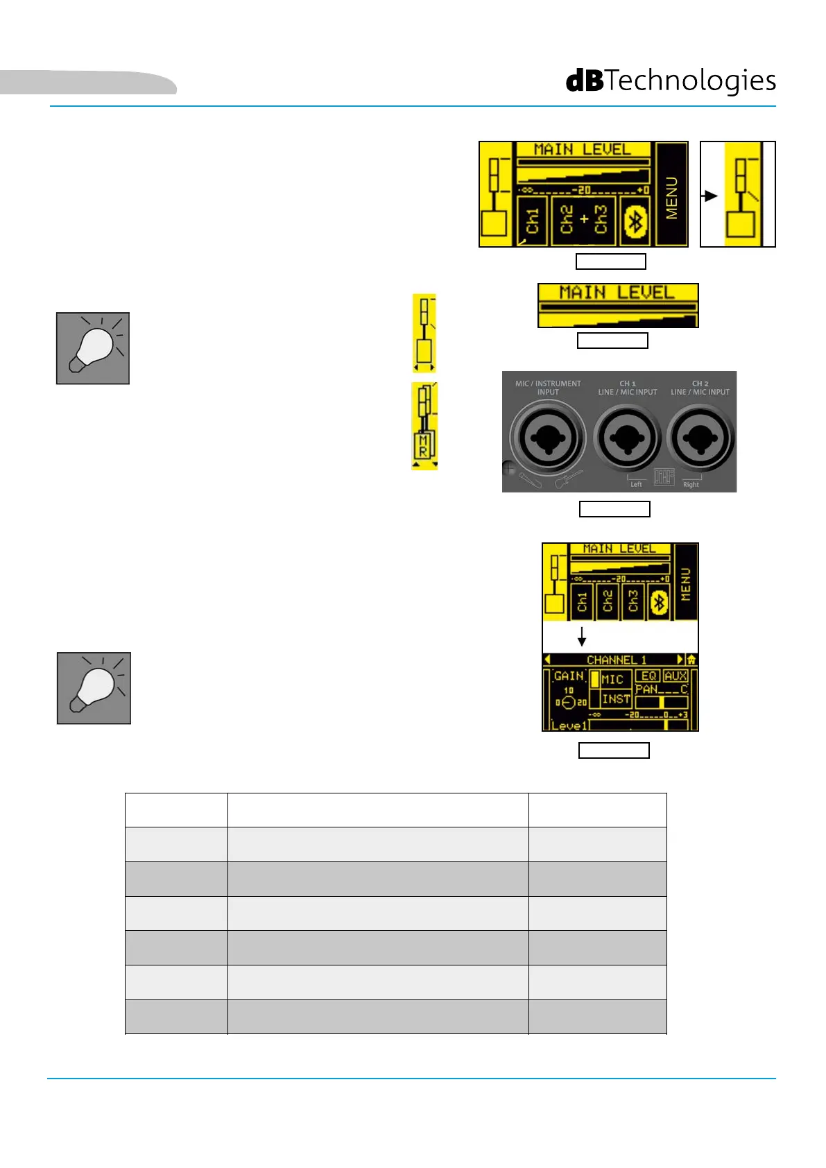 Für die Eingänge CH1, CH2, CH3 zeigt die untere
