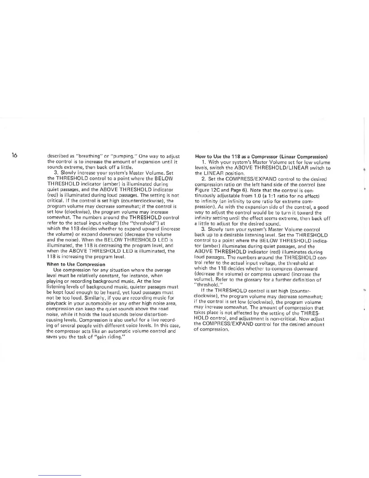 dbx 118 - Advanced Operation and Features; Peak Unlimiting and Limiting