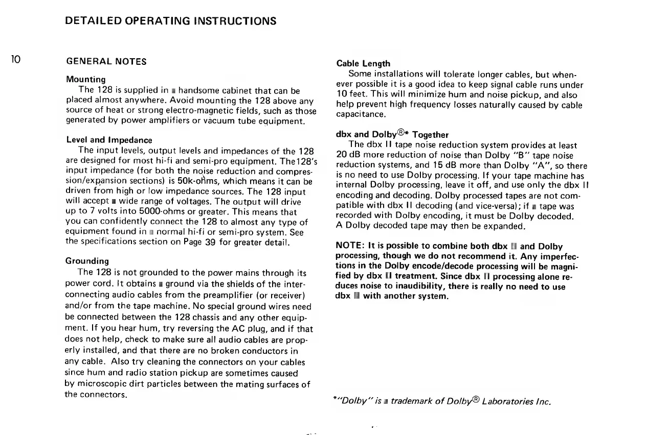 dbx 128 - DETAILED OPERATING INSTRUCTIONS; General Setup and Handling