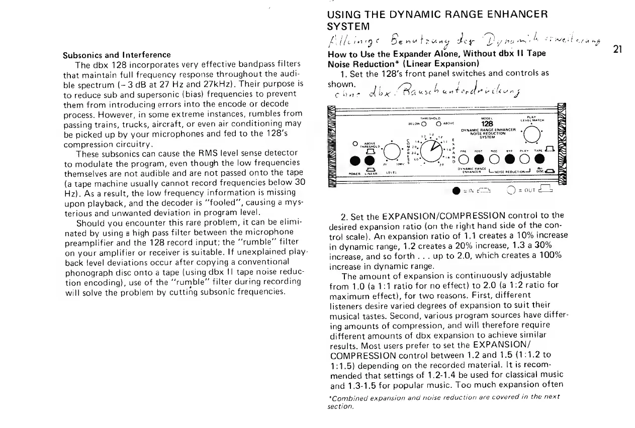 dbx 128 - USING THE DYNAMIC RANGE ENHANCER SYSTEM; Independent Expander Use