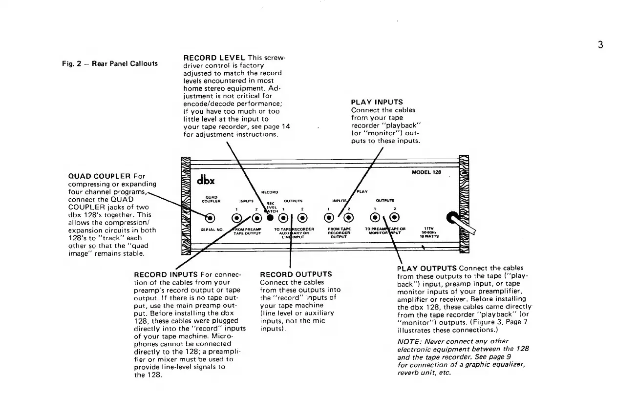 dbx 128 - Rear Panel Connections and Controls