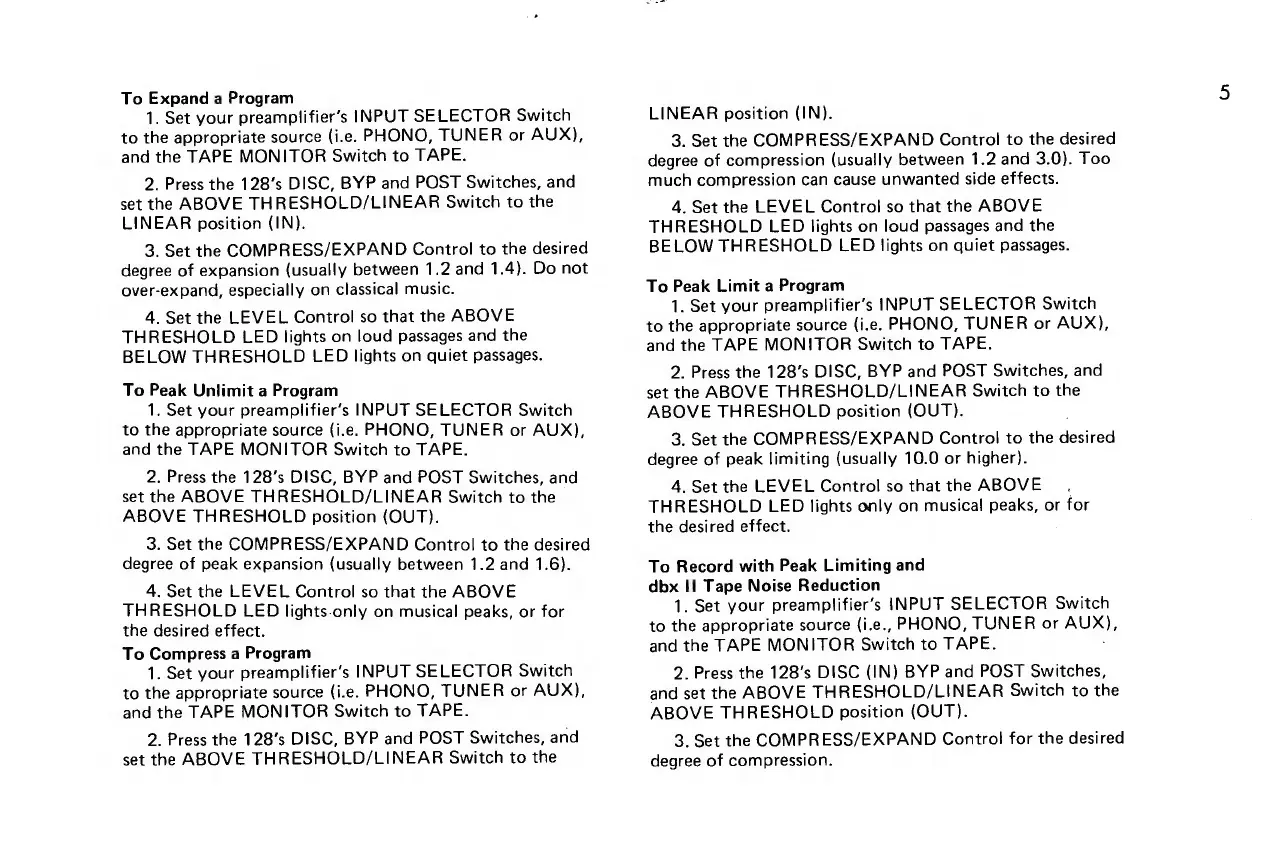 dbx 128 - Program Expansion; Program Compression; Peak Limiting and Noise Reduction Recording